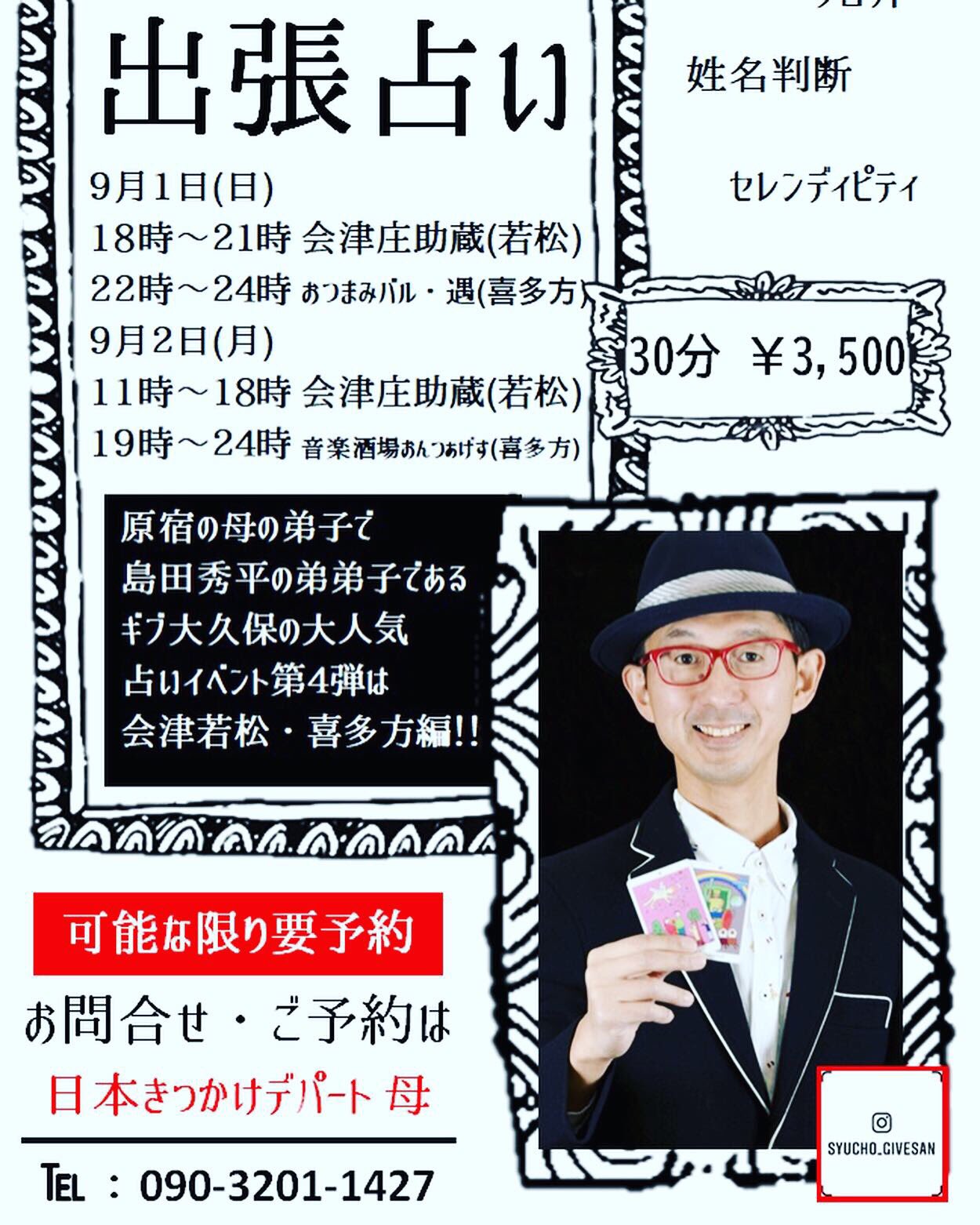 Uzivatel 出張占い ギブ大久保 会津編 Na Twitteru 占いイベント大好評です 楽しかった こころの整理がついた 来てよかった 皆さま とてもいいお顔で帰られて います ギブ大久保 占い タロット占い 姓名判断 セレンディピティ 手相 島田秀平 原宿の