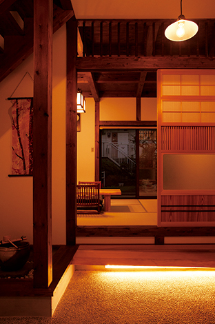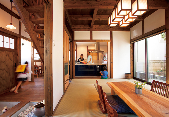 古き良き日本の家族団欒シーンを思わせる和室 ウッドデッキで母世帯と繋がっているため お互いの気配がわかる イエタテ