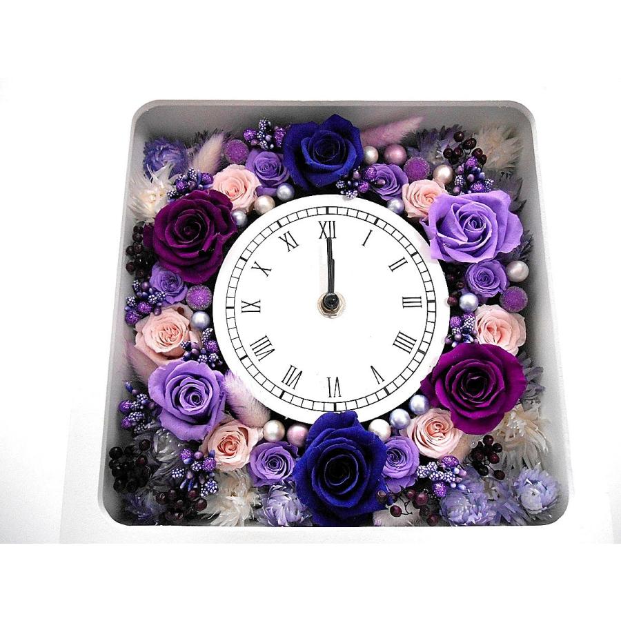 楽天市場 古希 プレゼント 紫のバラのプリザーブドフラワーの花時計 サンクスフラワークロック 角型 パープルローズ 翌日発送コース 時計 名入れ 70歳 古希祝い 女性 母 プリザーブドフラワー 贈り物 ギフト 絆を深める応援団 楽天市場店