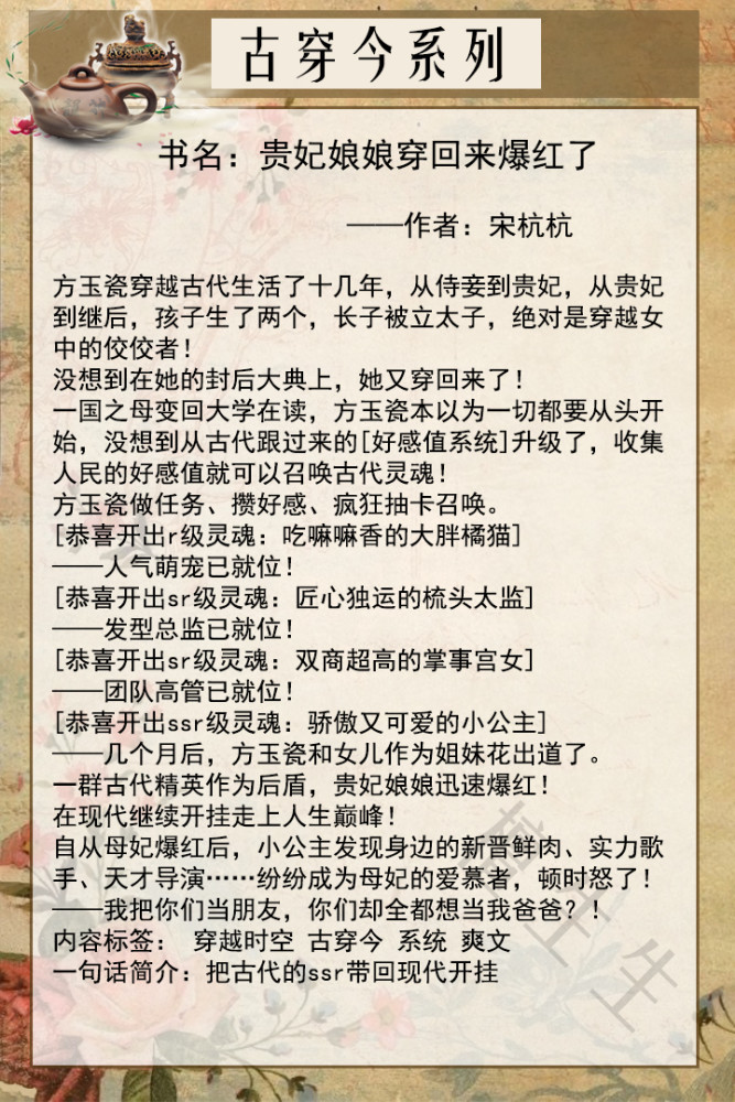 六本古人穿到现代系列言情 贵妃每天去上课 皇帝没事也挨打 娱乐资讯 八戒游戏